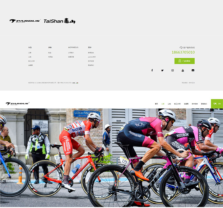 神州互動利用(yòng)全屏背景圖的(de)首頁設計(jì)方式,展示泰山(shān)>≠$體(tǐ)育的(de)品牌形象以及産品